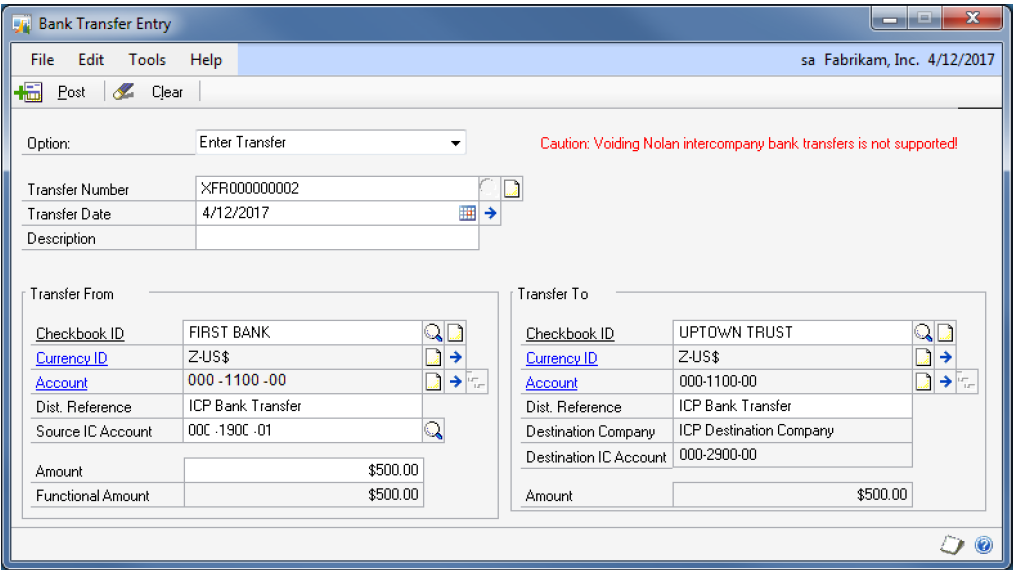 Note: Voiding Nolan Intercompany Bank Transfers is not currently supported for Multi-Currency transfers.