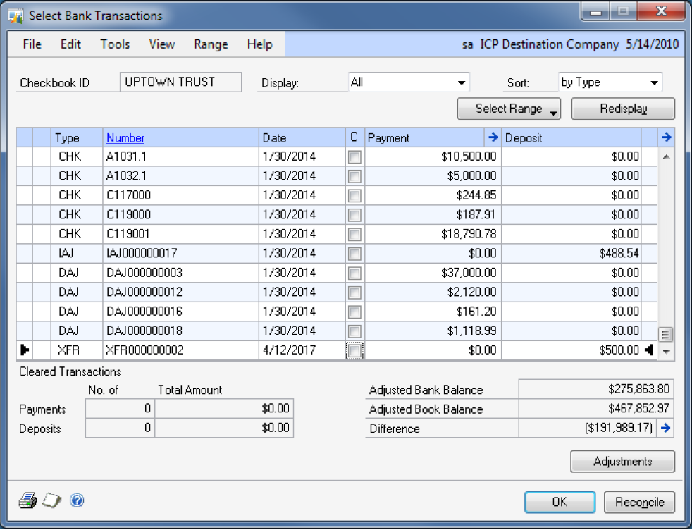 - The transaction will be available to reconcile in the Bank Reconciliation window in the destination company.