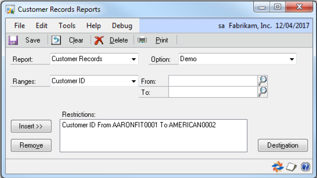 Ranges can be applied to the report on Date, Customer Number and on User ID.