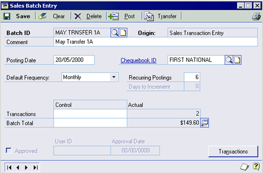 The Sales Batch Entry has been changed to allow the entry of Repeating information. This does not make the batch itself recurring but is instead used as the default settings for new documents created in this batch.