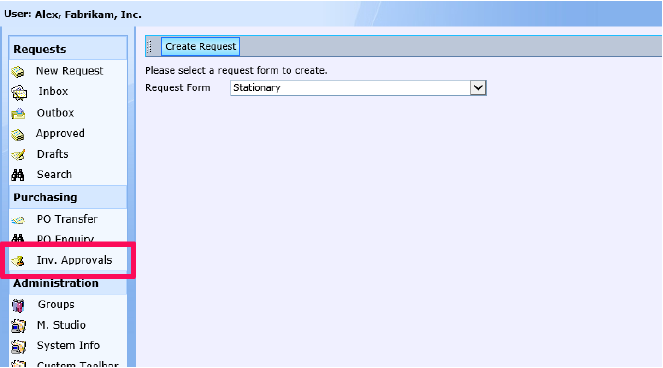 On installation of the eRequest GP Extensions module in Dynamics GP, the Invoice Approvals menu option in eRequest is activated.