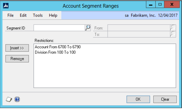 Enter the range and press the insert button in order to add the range into the Restrictions box. Select the range in the restrictions box and press the Remove button to remove the range.