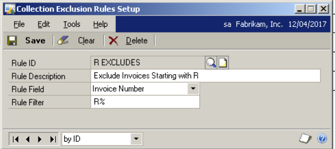 This allows rules to be configured that will exclude Invoices from Collection Processing. This window can be