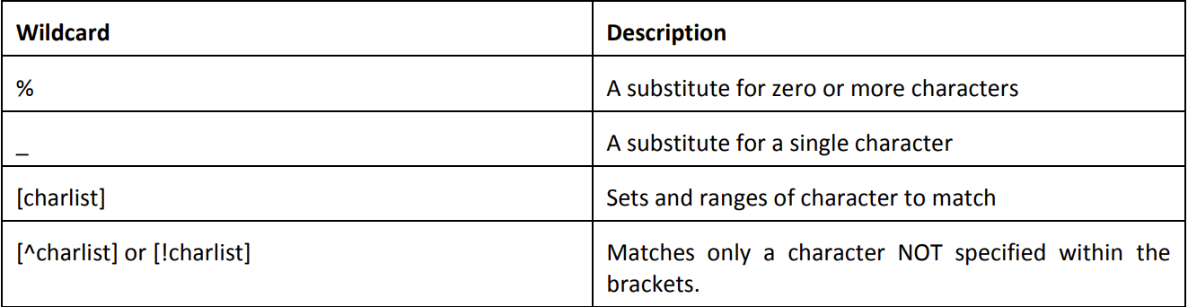 field. Wildcards that can be used are listed below.