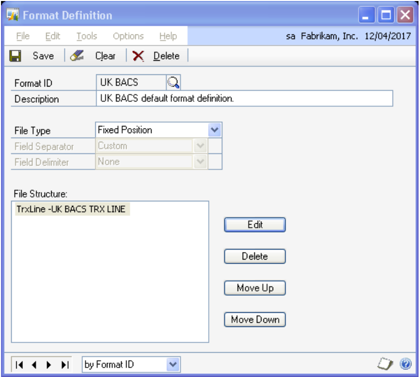 In this field you must type in what you wish to call your Export Format, i.e. its name. The Format ID is what the reference for the export format which will be shown on all other screens in Scheduled Cash Collection. So it is a good idea that you name the export format with a relevant ID, so that when you will know which export format the ID refers to. You may not save your export format without an ID.