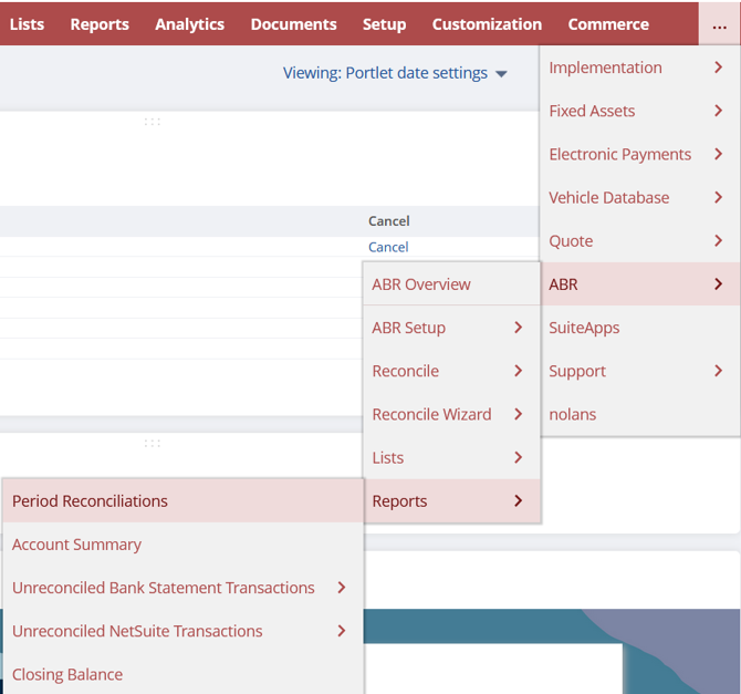 To create this report, go to ABR -> Reports -> Period Reconciliations as seen below.