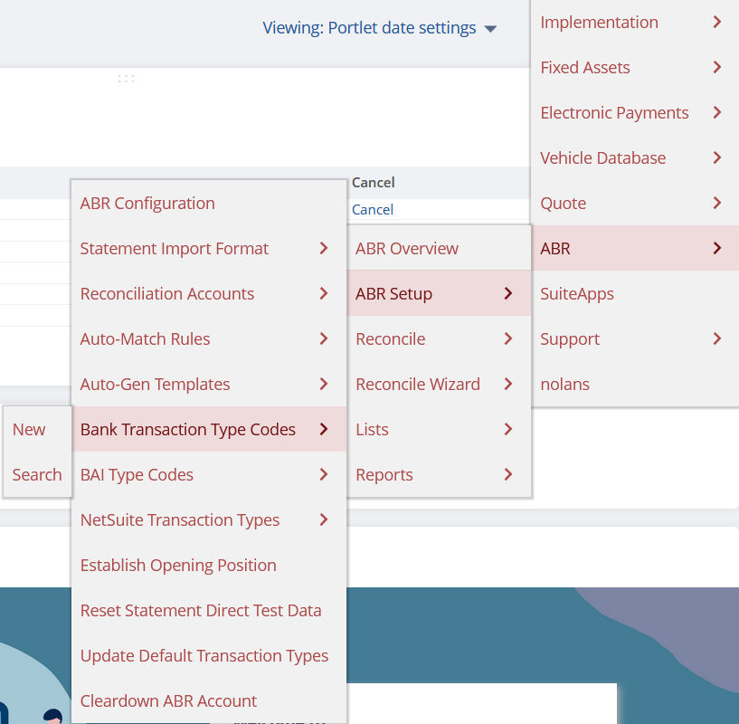 To find or create Transaction Type Codes, go to ABR –> ABR Setup -> Transaction Type Codes.