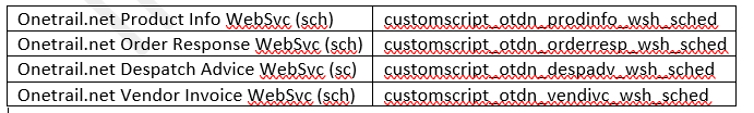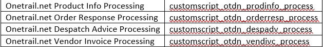 There are four sets of data which are retrieved from Onetrail – Product Information, Order Responses, Despatch Advices and Supplier Invoices. Product Information is updated daily but other messages can be generated at any time of day. To retrieve and process the messages, scheduled scripts have been created. The script deployments should be updated to set an appropriate time and frequency of execution. Each message type has a pair of scripts – one to retrieve (download) and store the messages and one to process the stored messages. These are detailed in the sections below.