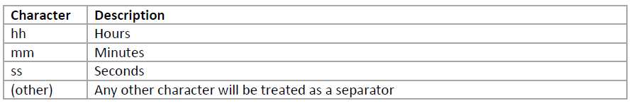 The recognised time formats are described below:
