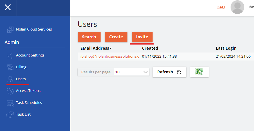 To grant users external to your company guest access to NCS you will need to go to the Admin section of NCS, and locate the "Users" section. Here you will find an invite button as shown below: