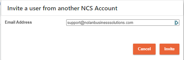 clicking this button will display a pop up box where you can enter the user's email address whom you wish to invite. Please note: this user must be an existing NCS user on another account.