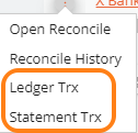Statement and Bank Ledger transaction searches both operate in the same fashion, and allow you to search against open and reconciled transactions using an array of filters.