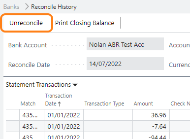 First you will need to locate the reconcile you wish to undo through the reconcile history pages.