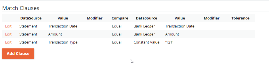 This rule assumes you want to limit this rule to only process Statement lines which have a 'Transaction Type' of 121