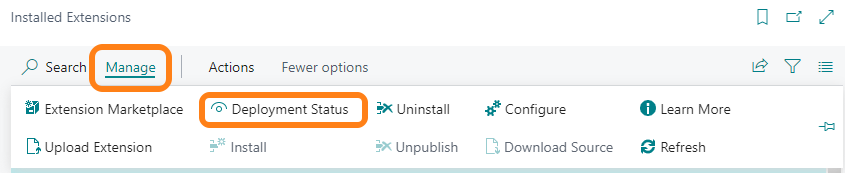 Then on this window click Manage and then Deployment Status as shown: