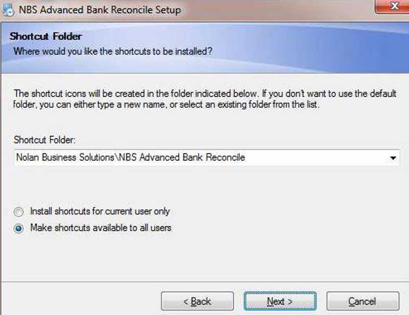 - Shortcut Folder – Choose where you would like Nolan shortcut folder to be placed and click Next.![]()