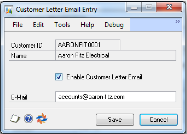 Credit Control now lets you email customer letters direct to the customers, in addition to producing a printed copy. This is setup using the Customer Letter Email Entry window, which opens from the Extra menu of the Customer Maintenance window.