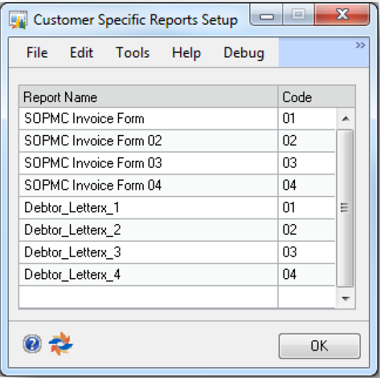 Tools >> Setup >> Sales >> Credit Control >> Customer Specific Reports Setup