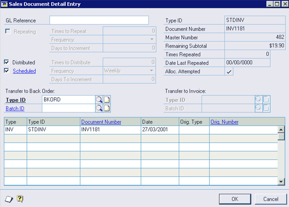 Extra fields have been added to this window to handle Distributed invoices. The fields are only enabled in the SOP document is an Invoice.