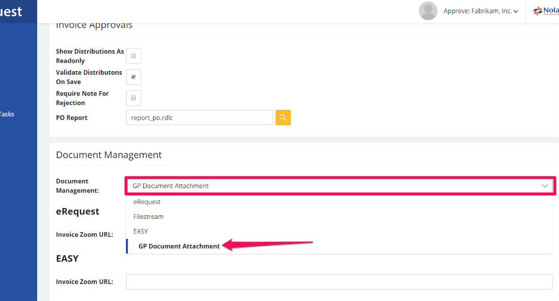 - Go to company settings and change the Document Management option to “GP Document Management”.