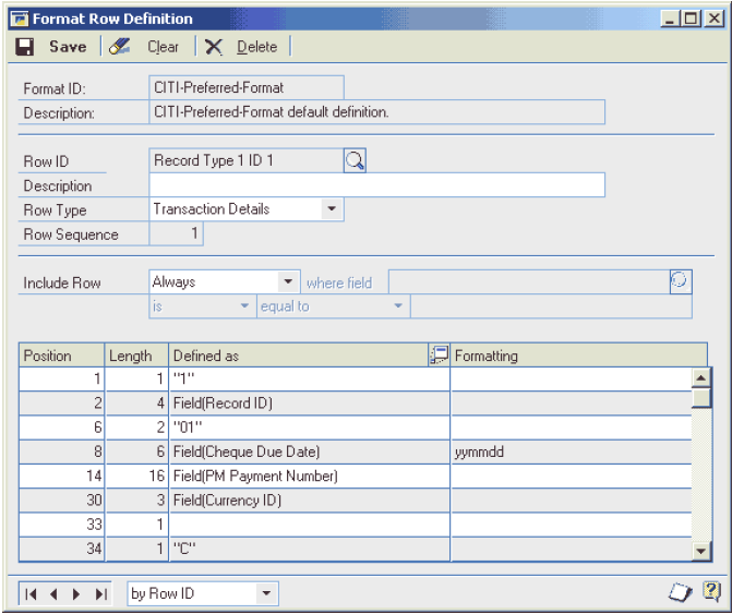 Format Row Definition Window