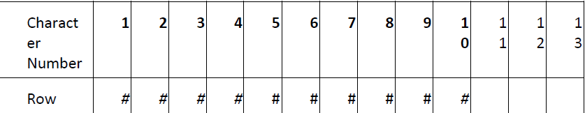 And a field defined with a position of 1 with a length of, say, 10 would take up characters 1 to 10, as shown in this diagram:-