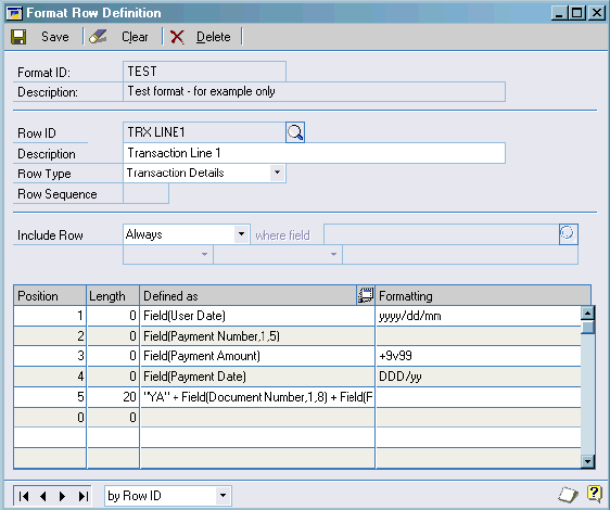 Ok so now we can save this expression and we don’t want any formatting, so this finishes our transaction line row. If we look at the Format Row window it should now be looking like so: