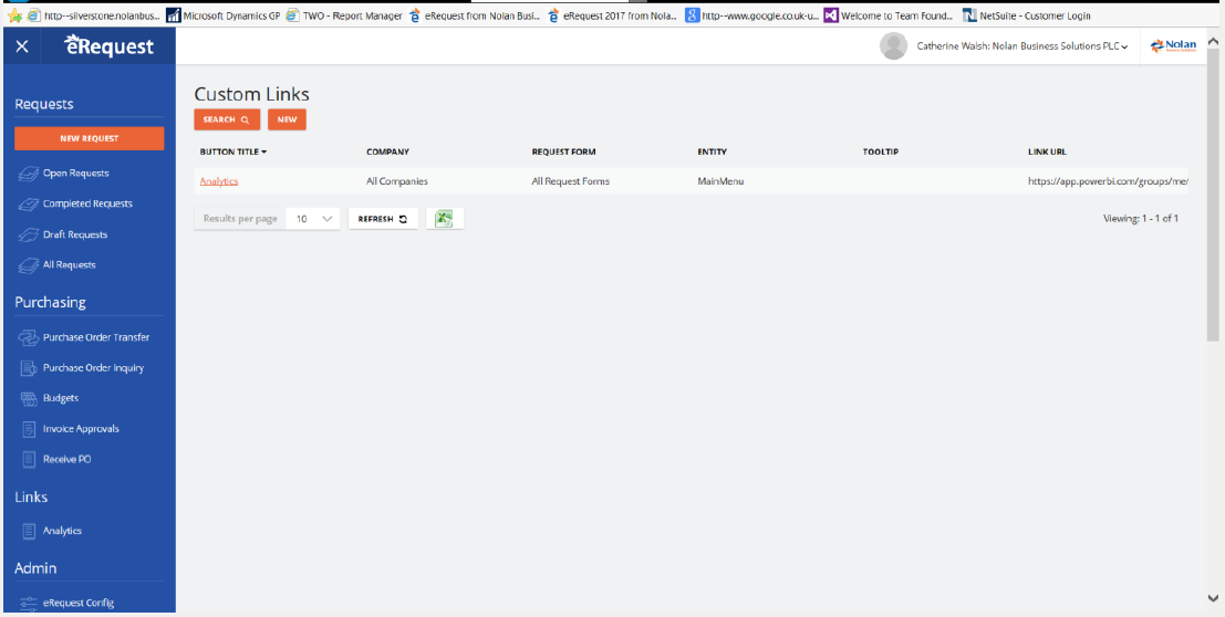 The Custom Toolbar option allows an administrator to define custom buttons on the toolbar on a request and to define the actions taken when these are pressed.