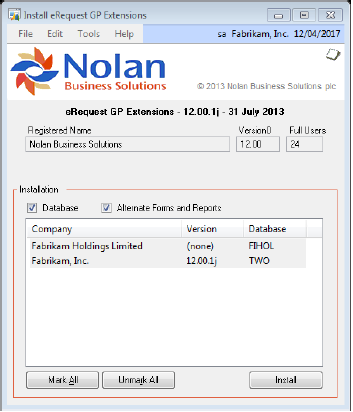 The Invoice Approvals module requires a module to be installed within Dynamics GP. This module is known as the eRequest GP Extensions. No Registration keys are required as the module checks the eRequest keys to ascertain if the module is registered. The Module does however require installing for each of the Dynamics GP companies that will be using the functionality.
