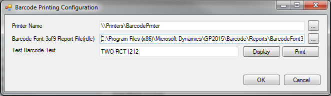 Barcode Font 3of9 Report File (rdlc) – Select the Report Definition file for the barcode to be printed. The 3of9 font should be used for the barcode.