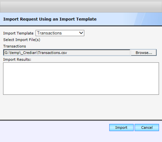 If all the transaction are imported correctly the number created will be reported in the ‘Import Results’ list. If any errors are generated, all the transaction will be rejected and no transactions will be created.