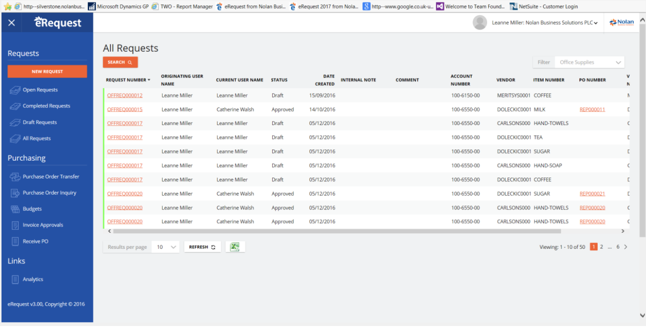 Use this page to search Requests within the system; only requests belonging to users in your User Group and the child groups below that will be shown, or requests you have specifically been copied on.