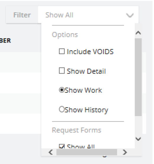 Show Work/Show History – The view can either show requests from work (work request are ones not transferred to history yet) or from history.