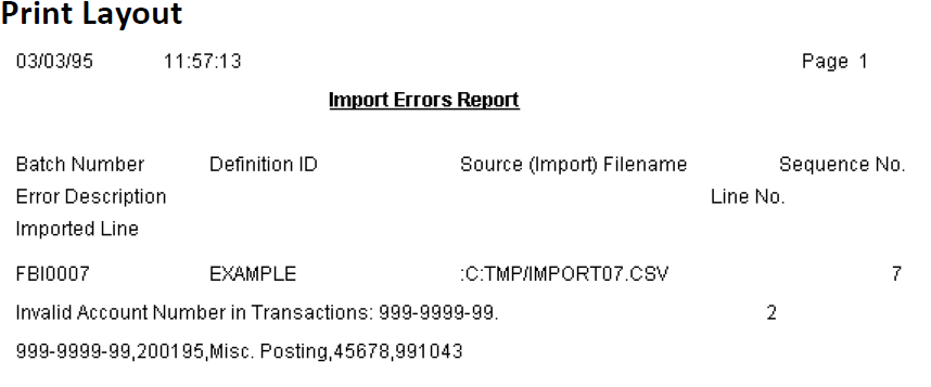 This report is produced as a consequence of running the Data Integration program, and produces a print showing