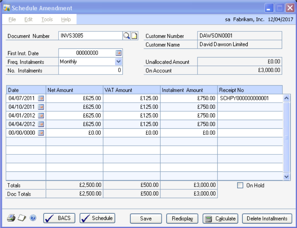 window will allow the user to amend dates and amounts and to place payment schedules on hold if required.