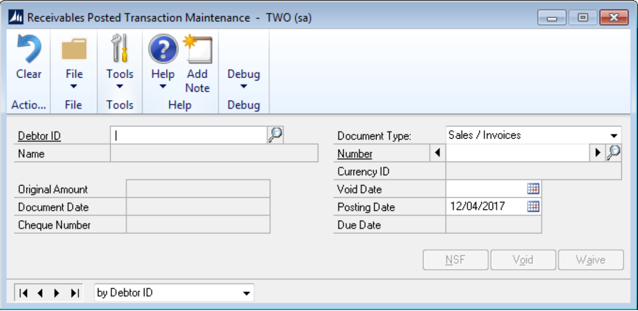 Within Microsoft Dynamics GP, Void or returned transactions are posted using the Receivables Posted