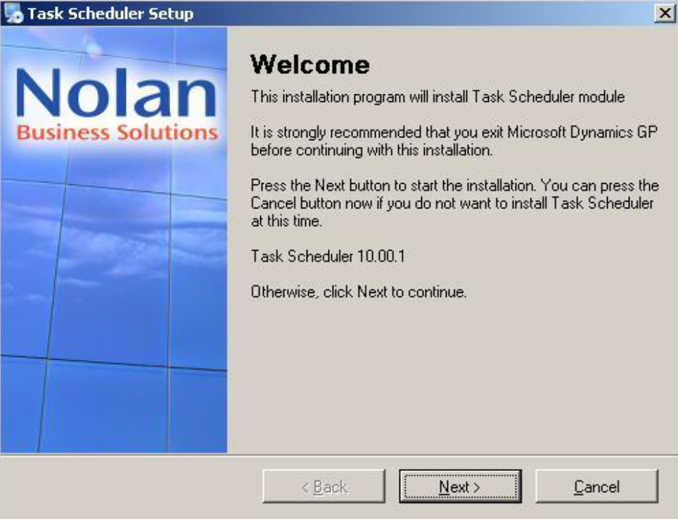 - A shortcut will now have been added to the Shortcut bar to allow the installation to be completed. From the Shortcut bar select “Nolan Computers > Install Task Scheduler”. The installation window will be opened.