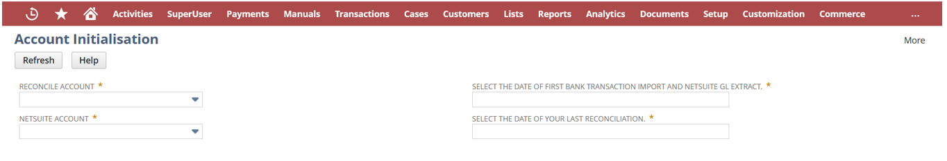 After Submitting your Account Initialisation, you will need to enter the details of Outstanding Transactions that are Not in ABR via a NetSuite CSV Import.