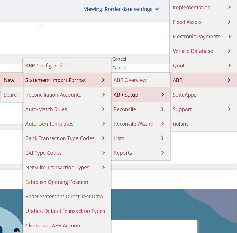 To use either of these Formats, make sure one is selected under the File Format Filed when creating a new ABR Statement Import Format. To get to ABR Statement Import Format, go to ABR -> ABR Setup -> Statement Import Format -> New as seen below.