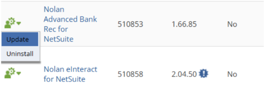 Following the navigation above should display a list of bundles within your account. Bundles fall under two types managed and non-managed. Managed bundles are automatically updated by the provider. The second type is non-managed bundles these require the user to update the bundle manually. You will know if a bundle needs an update by the Blue ! stamp next to the version number.