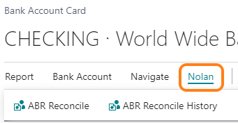 Nolan ABR extends the Bank Account Card page in Business Central to add Nolan ABR information to the card and allow the user to access the reconciles.