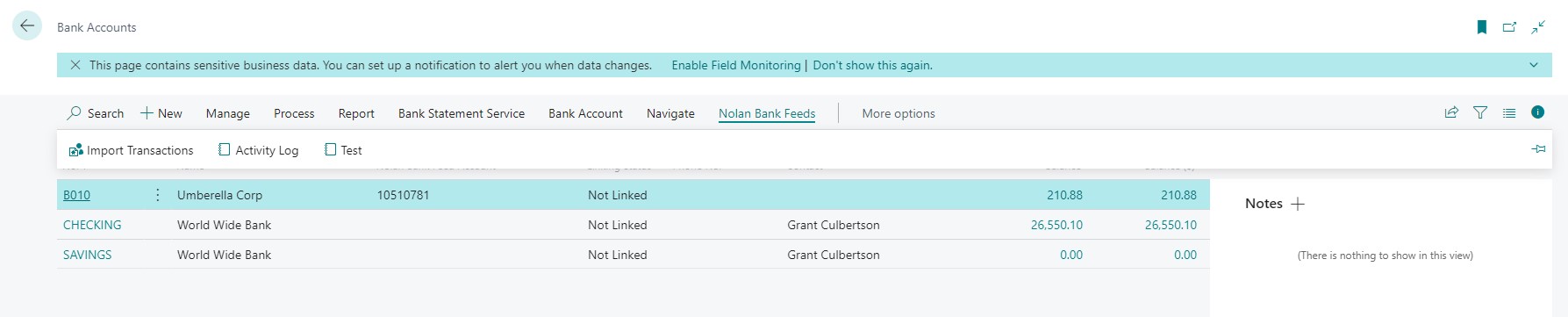 This will now have Imported all Transactions across all the listed Bank Accounts from Nolan Bank Feeds into Dynamics 365 Business Central.